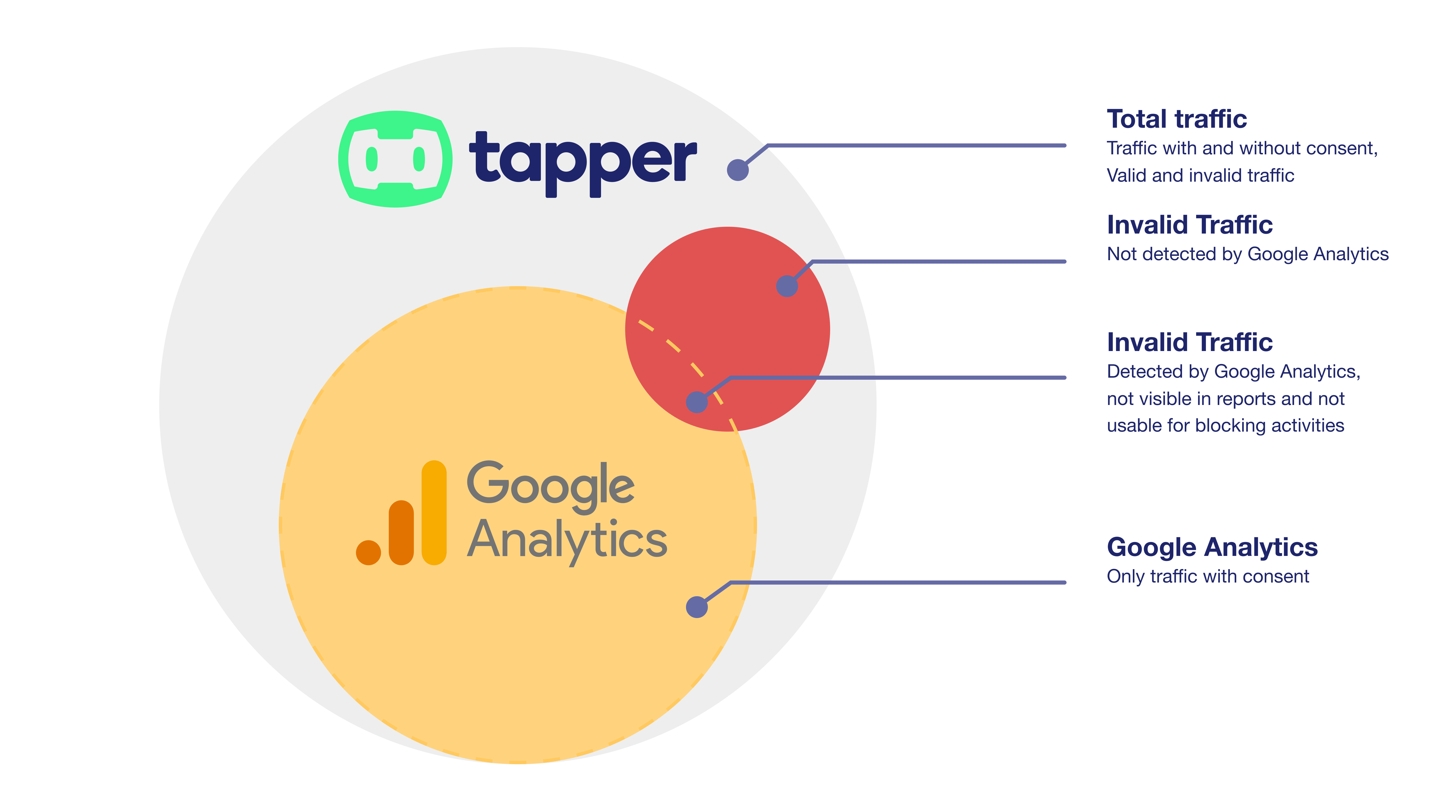 Are we suggesting that you replace Google Analytics 4 with Tapper? No, our expertise lies in detecting Invalid Traffic and remains unchanged.