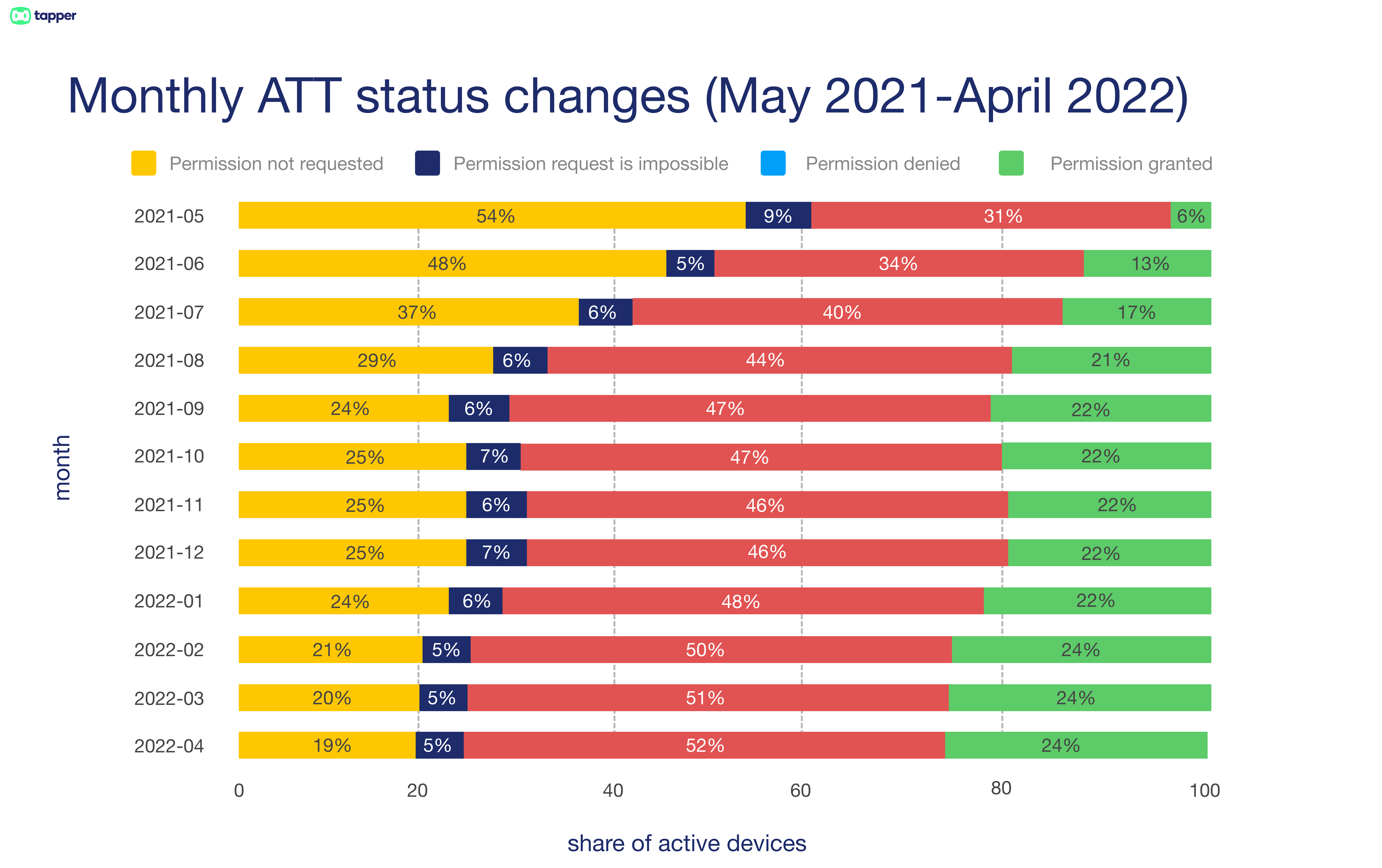 Once more, the trend remains consistent: A majority of users (>50%) opt out of tracking when given the choice.