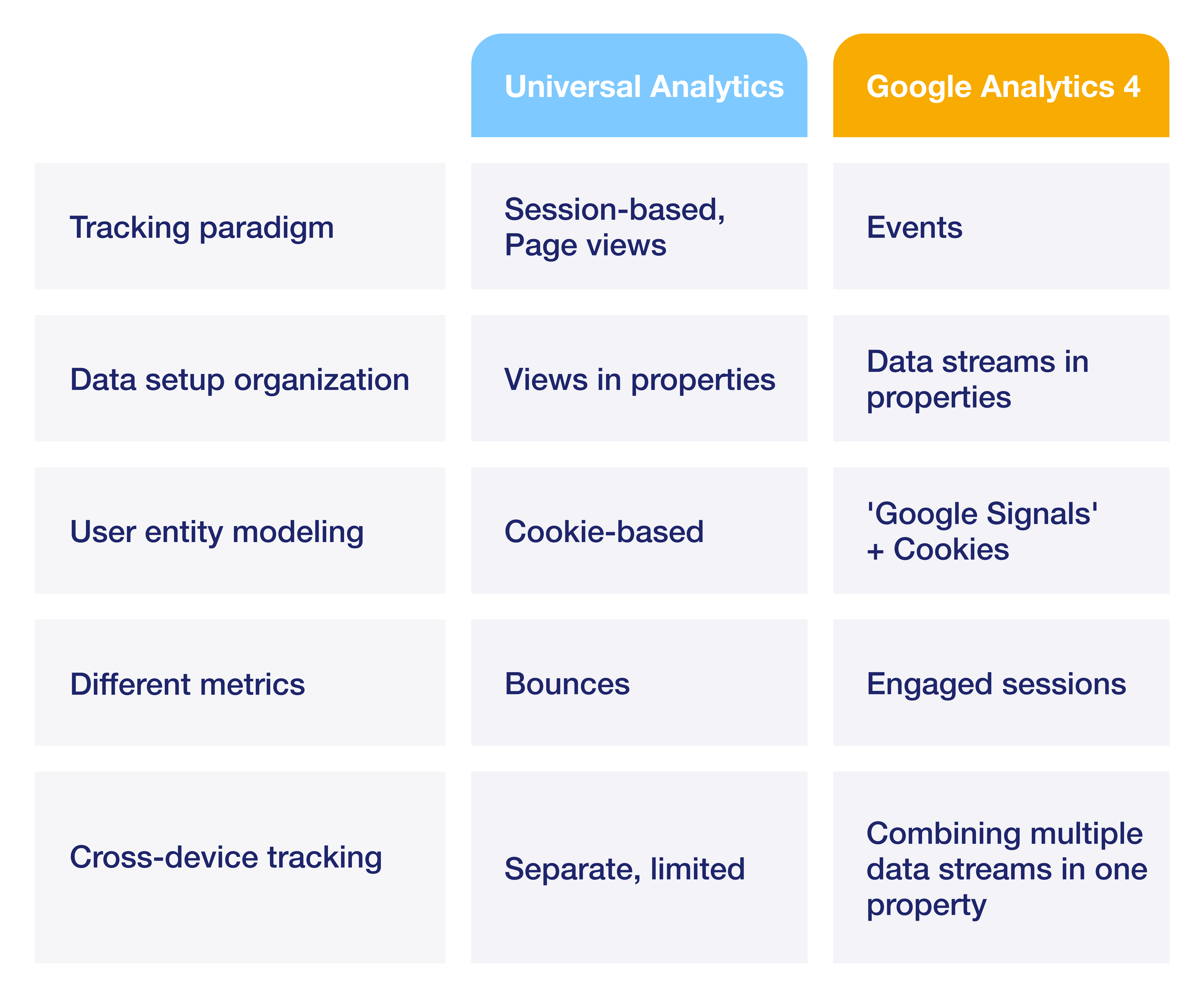 Differences in analytical data between Universal Analytics (UA) and GA4